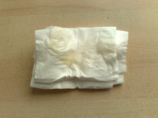 cortamos un par de tiras de papel y las impregnamos bien de mocos, ya sea sonándonos las narices o escupiendo en ellas.